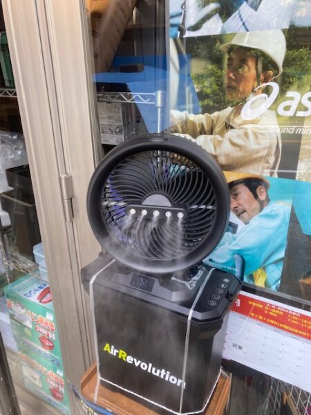 ★KMネクストのミストファン 充電式コードレス エアレボリューション・・・カラオケ番組の収録の時には、この一台が力を発揮して涼しかったことを覚えています。。。リモコン付き、軽量でコンパクト、タイマー機能や持ち運びににも便利なことから、キャンプなどのアウトドアにも役立ちます。お値段は、¥19800です。
