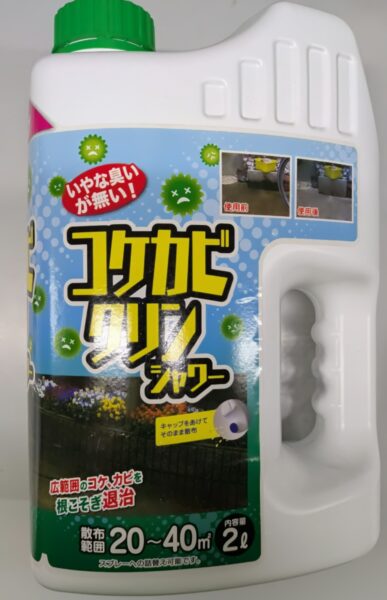 ★コケカビクリンシャワー2L・・・玄関やベランダ、レンガや踏石、お墓の墓石などのカビの除去にいかがでしょうか。ツンっとくるにおいもなく使いやすい商品です。¥1760