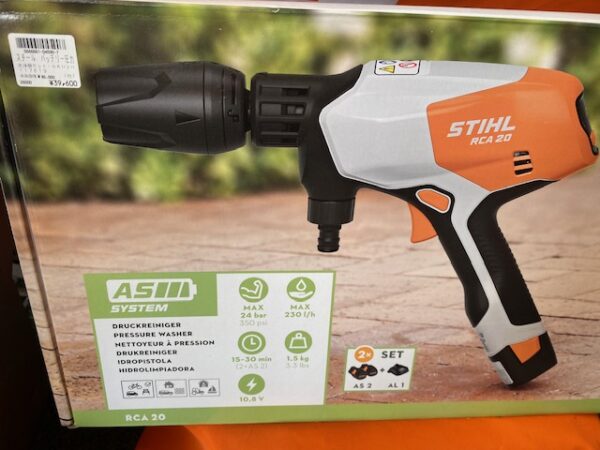 ★スタール社のバッテリー高圧洗浄機RCA20・・・思い立った時に手軽にすぐに使えるパパッと準備、ササッと洗浄な1台。軽量でコードレス、なのにパワフル洗浄です。携帯もでき、大容量のタンクなので割と長く使えます。4つの切り替えモード付で、玄関や外のちょっとした壁、いすなどの汚れなど、ササッと掃除したいところに使えます。¥39600です。