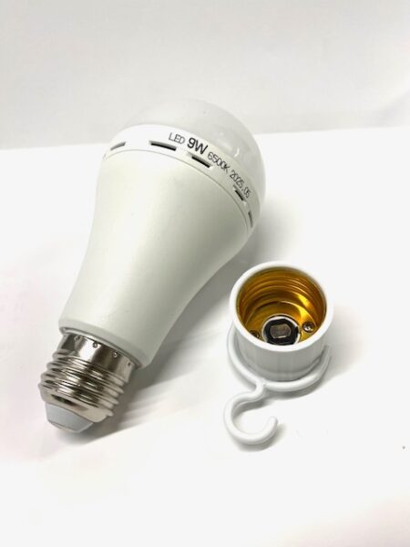 ★アップドラフトの充電式防災用 LED電球・・・通常時は照明のライトとして使用し、3時間から10時間程でフル充電。停電時には、児童検知して点灯するという優れものです。専用のソケットを使用することで、ランタンや懐中電灯のように使うことができます。1個¥946。