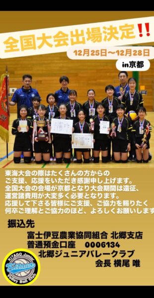 北郷ジュニアバレーボールクラブが全国大会に出場!