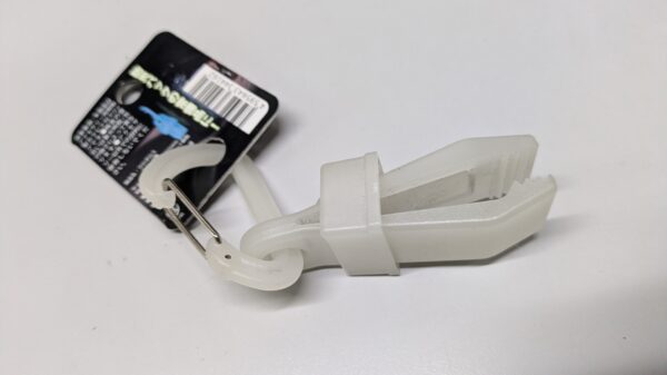 ★ウロボロスクリップ・・・アウトドアなどで幅広く使える高性能なクリップです。暗闇で光る蓄光タイプです。-100℃から100℃までの温度に耐えられます。見た目は洗濯ばさみにカラビナがついているような白いもので、ハサミの挟み口は10mm以上の設計です。片口でロック&リリースが可能です。手袋や帽子など、外の作業で濡れたときにつまんで乾かしたり、冷蔵庫内での使用やまた、夏の暑いときの使用にも、そして、光るので、夜の作業などにもやくだちます。1つ税込み1133円です。