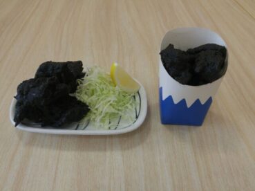 富士山に一番近い道の駅 すばしりの今年のイチオシは黒!富士山の形のライスに真っ黒のカレーがかかったカレーライス、溶岩のような黒い唐揚げ????